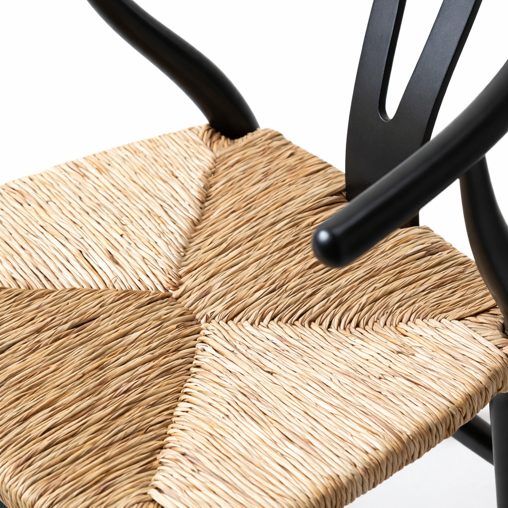Rhapsody sandalye, doğal malzemelerin estetiğini modern tasarım anlayışıyla bir araya getiren zarif bir oturma çözümüdür. Kayın ağacından üretilmiş sağlam ayak yapısı sandalyeye yüksek dayanıklılık kazandırırken, doğal dokusuyla mekâna sıcak ve dengeli bir karakter katar. Oturum bölümünde kullanılan doğal hasır yüzey hem nefes alabilen yapısı hem de el işçiliğini yansıtan dokusuyla konfor ve özgün bir görünüm sunar. İnce hatlara sahip tasarımı ve doğal malzeme uyumu sayesinde Rhapsody sandalye; yemek odaları, kafe ve restoranlar ile modern yaşam alanlarında estetik ve fonksiyonelliği bir arada sunan zamansız bir tasarım parçasıdır.