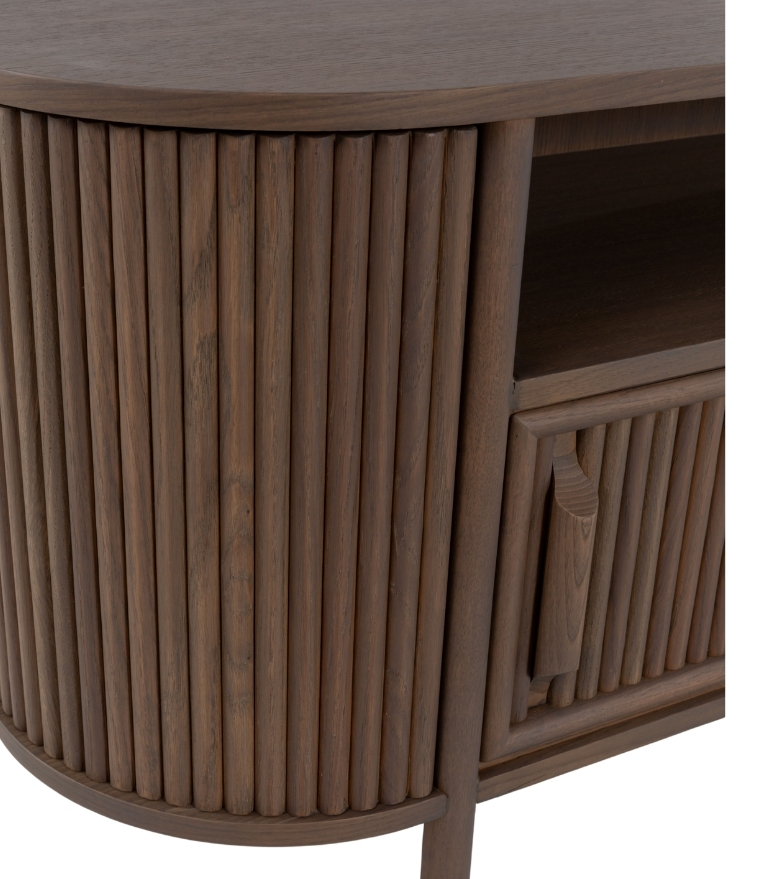 Santa TV ünitesi, meşe masif ve meşe kaplamalı yapısıyla doğal dokuyu modern çizgilerle buluşturur. Dayanıklı yapısı ve zarif tasarımıyla oturma alanlarınıza sıcak bir atmosfer kazandırırken, fonksiyonel yapısıyla düzenli bir kullanım sunar.