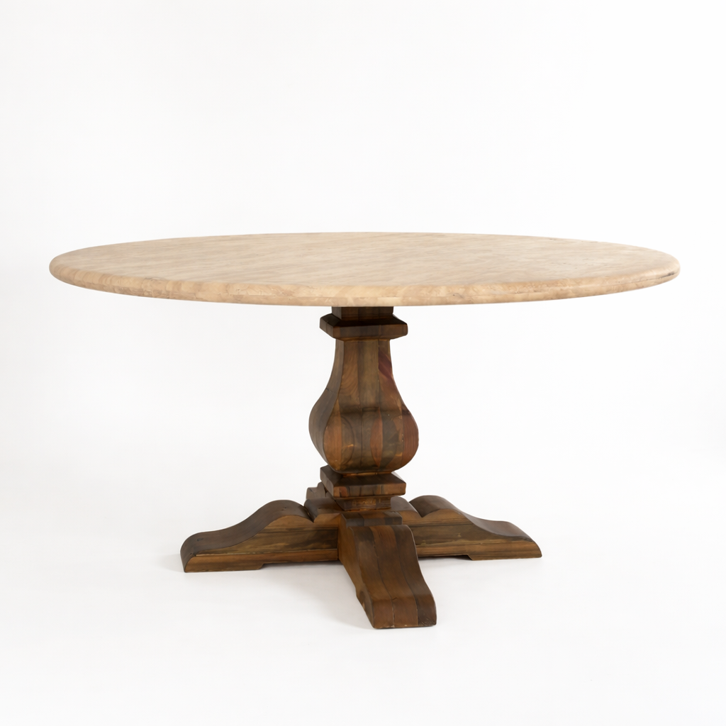 Verona Masa, doğal traverten üst tablası ve sağlam dişbudak ağacından üretilmiş ayak yapısıyla zamansız bir tasarım anlayışını yansıtır. Traverten taşın kendine özgü doğal damarları ve sıcak tonları masaya sofistike bir karakter kazandırırken, dişbudak ağacının dayanıklı ve estetik yapısı ürüne güçlü bir denge ve uzun ömürlü kullanım sunar. Klasik formdan ilham alan merkezi ayak tasarımı hem görsel olarak zarif bir duruş sağlar hem de oturma alanında rahat kullanım imkânı yaratır. Doğal malzemelerin uyumuyla öne çıkan Verona Masa, yaşam alanlarına sade ama etkileyici bir şıklık kazandırır.